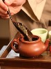 The amount of tea added depends on the number of people you plan to serve. Typically fill the small pot 1/4 to 1/3 full with dry tea leaves.